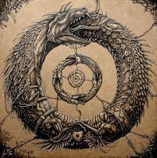 El Ouroboros es un símbolo que representa una serpiente que se muerde la cola, formando un círculo. Este símbolo se interpreta como un ciclo eterno de vida, muerte y renacimiento. También puede simbolizar la unidad de opuestos y la interconexión de todas las cosas. Como vimos en la  primera parte del artículo, el más antiguo conocido se encontró en los restos de Tutankhamon, y ha sido un símbolo recurrente en culturas posteriores.